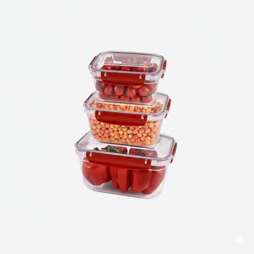 Generic - طقم علب ثلاجة مستطيلة من Dunya Fresh & Lock - 3 قطع (1000، 1800، 3000 مل)، محكمة الغلق، بلاستيك آمن وخالي من BPA