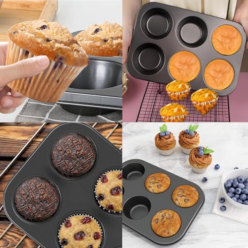 Duomama - Premium Steel Muffin Pan - Bake Cupcakes and Cheesecakes! Non-Stick Bakeware for Muffin Tops. 2 Packs, 6 Cups Each. Black Finish for Sleek Look and Even Baking.