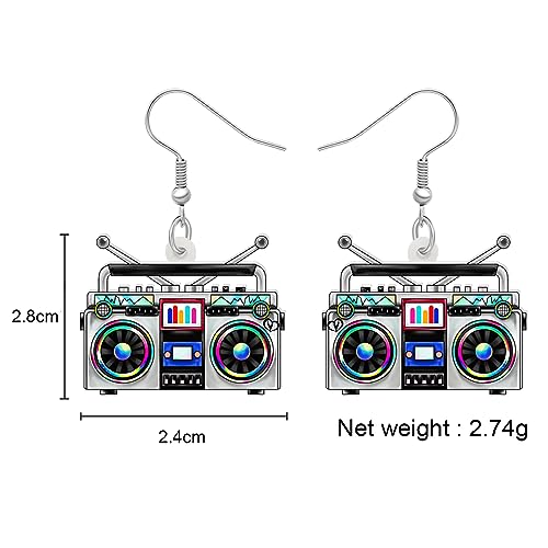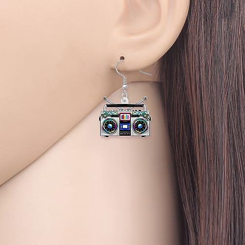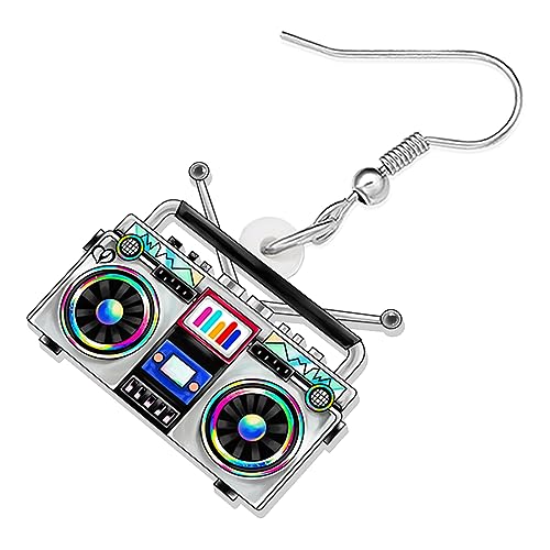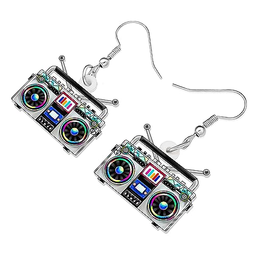DUOWEI - DUOWEI Acrylic Funny 80s 90s Vintage Cassette Tape Player Earrings Dangle Gifts for Women Mom Birthday Party Cute Retro Nostalgia Radio Earrings Jewelry for Music Lovers Outfit