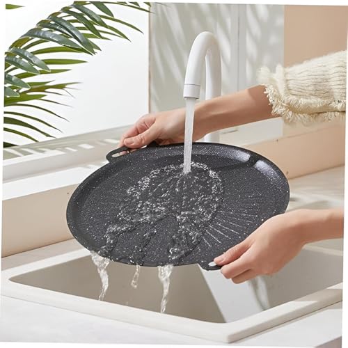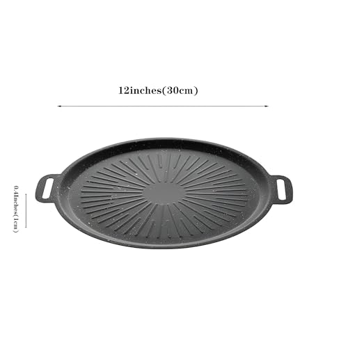 - With a diameter of 12 inches (30 cm) and a height of 0.4 inches (1 cm), this circular grill pan is designed for versatility. Its size makes it suitable for various cooking tasks, from grilling meats to frying vegetables, accommodating all stovetops including gas, electric, and induction.