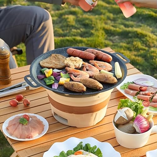 - This lightweight griddle pan is perfect for both indoor and outdoor cooking, making it an excellent choice for camping trips and barbecue parties. You can enjoy grilling fish, chicken, roasted shrimp, and more, providing a fun cooking experience with family and friends.
