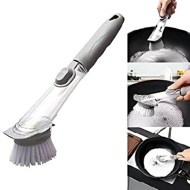 - يتميز هذا المنتج بفرشاة تنظيف بمقبض طويل مصممة خصيصًا لسهولة توزيع الصابون، مما يجعلها فعالة للغاية لتنظيف أحواض المطبخ والشوايات وأدوات الطبخ والأواني بأحجام مختلفة. يضمن المقبض المريح قبضة مريحة أثناء الاستخدام.