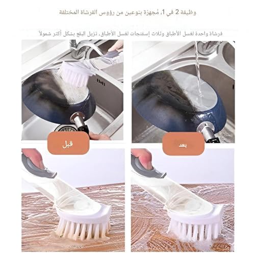 Generic - فرشاة تنظيف المطبخ المتينة - مقبض طويل، مع اسفنجة إضافية وفرشاة لمهام تنظيف الصحون والحوض والشواية بكفاءة