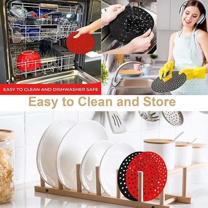- Made of food grade silicone, BPA free,silicone air fryer liner has strong heat resistance, heat resistance up to 431℉, the silicone will not deform after long-term use