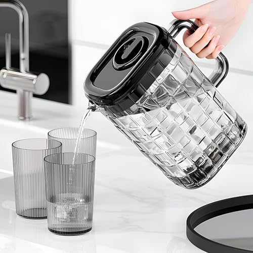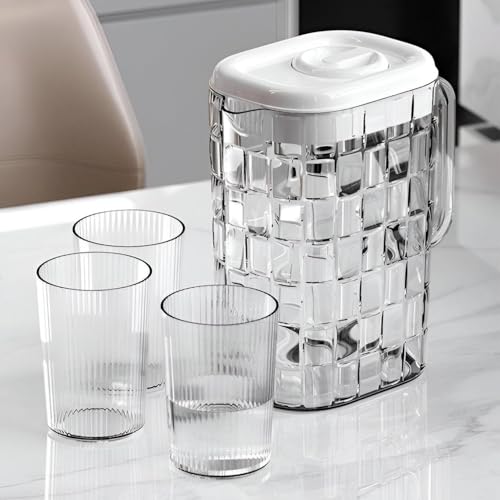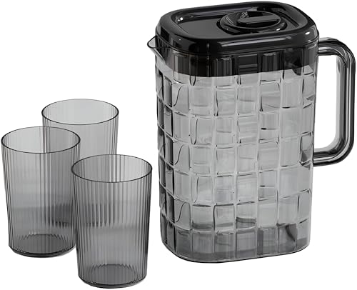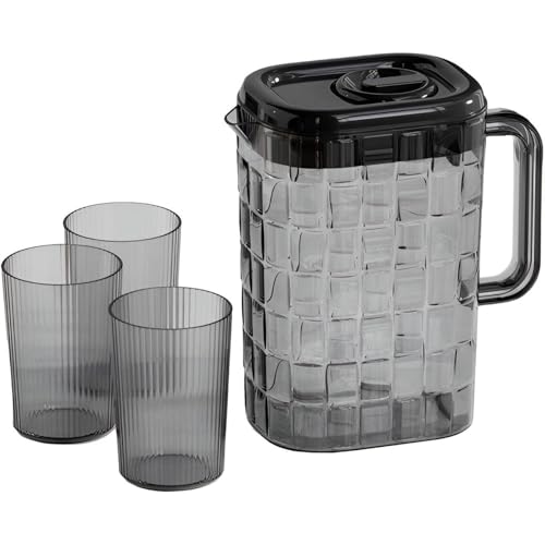 - Spacious 2‑liter transparent pitcher paired with three matching plastic cups, perfect for serving plenty of drinks to the whole family or a large gathering of guests.