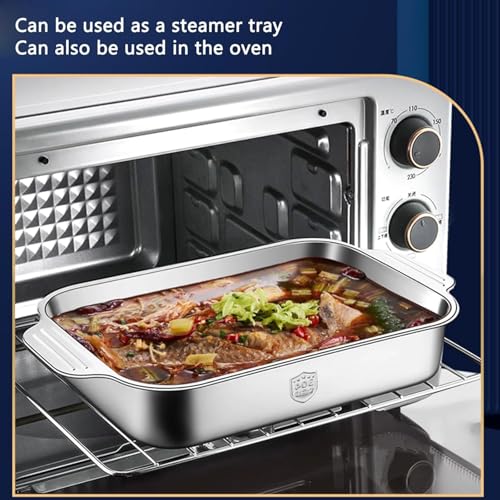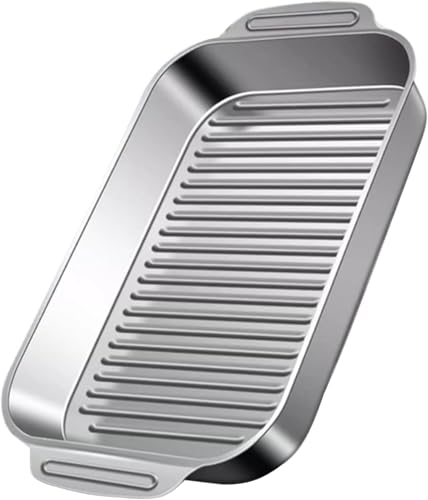 Generic - Durable Stainless Steel Griddle Pan with Two Handles – Versatile Oven and Stove Grill Tray – Perfect for Professional-Style Grilling of Chicken, Steaks, Seafood & More