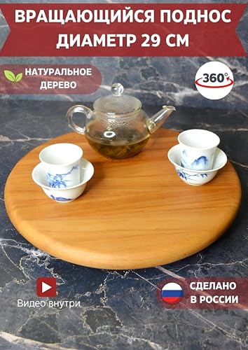 Generic - صينية تقديم خشبية متينة - حامل قابل للدوران 35 سم