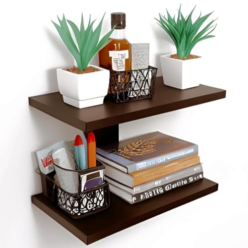 - Modern Two-Tier Design: Stylish floating shelves with a dark brown wood finish, adding a contemporary touch to living rooms, bedrooms, offices, or hallways.