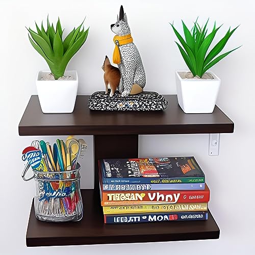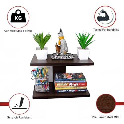 DURATECH FURNITURE'S - DURATECH Engineered Wood Floating 2-Tier Wall Shelves | Wooden Wall-Mounted Display Rack for Books, Plants and Home Décor | Modern Storage Organizer (Dark Brown Finish, 61.5x14.8x61.5 cm)