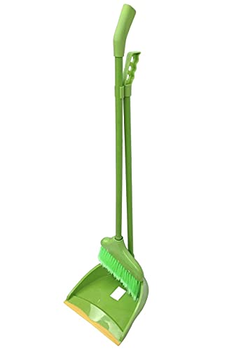 Mzshne - جاروف ومكنسة لجمع الغبار مع 2 مقبض بلاستيكي - 90 سم، أخضر