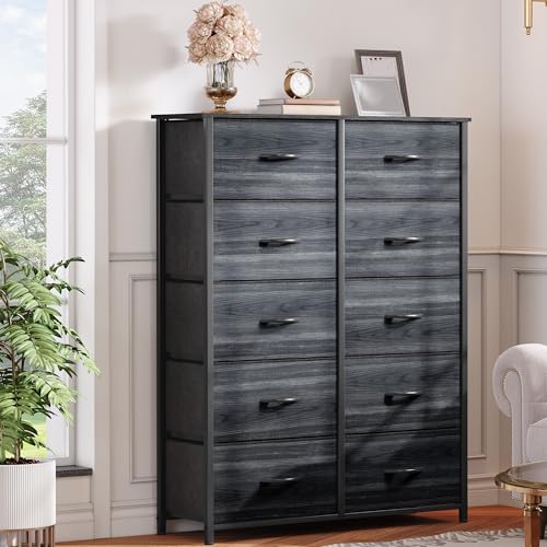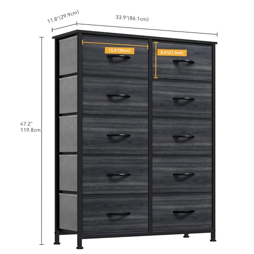 DWVO - دي دبليو في او خزانة ملابس من 10 ادراج - برج تخزين قماشي، وحدة تنظيم لغرفة المعيشة والرواق والخزائن - اطار ستيل قوي، سطح خشبي وصناديق قماشية سهلة السحب