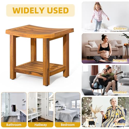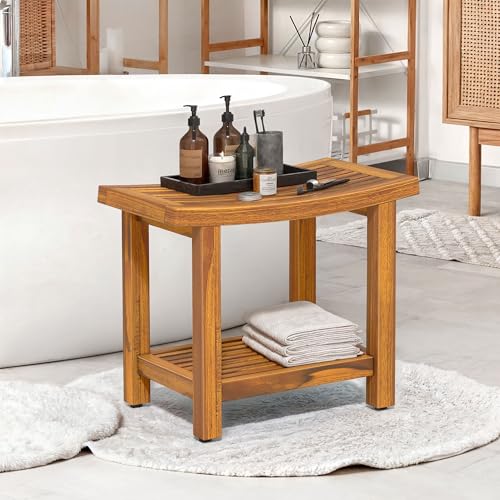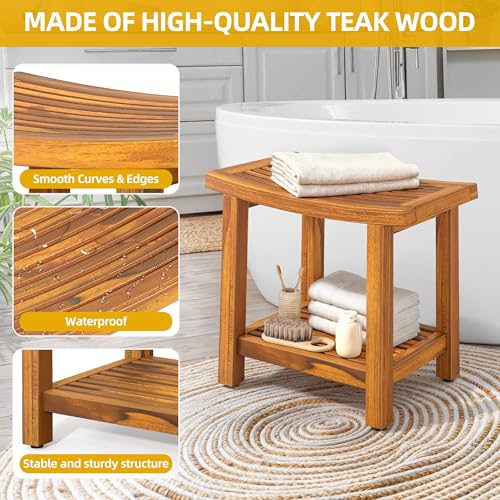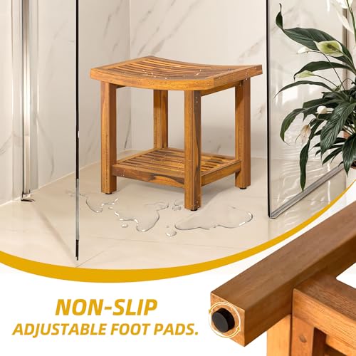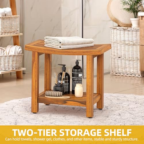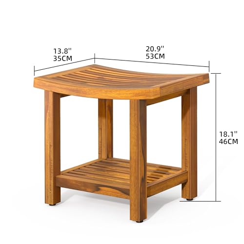 DWVO - DWVO Teak Shower Bench with Storage Shelf for Shaving Legs, 20.9'' Shower Stool Bath Seating Bench for Shower with Non-Slip Feet, Easy Assembly for Indoor and Outdoor Use