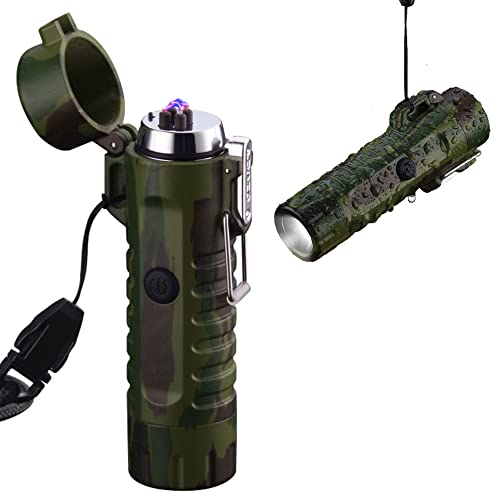 DXIA - Electric Lighter, Waterproof Arc Lighter, USB Rechargeable Portable Outdoor Flashlight, Windproof Plasma Lighter, for Hiking, Camping, Adventure, Outdoor, Survival, Tactical, Indoor, Outdoor