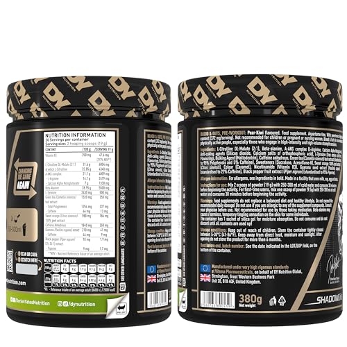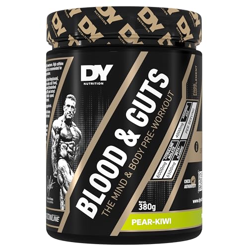 DY Nutrition - دي نيوترشن- مسحوق ما قبل التمرين بلد اند جتس، 380 جرام (كمثرى كيوي) - مكمل ما قبل التمرين عالي القوة مع 350 مجم من الكافيين، مالات السيترولين، بيتا ألانين، أرجينين AKG، إل تيروسين، فيتامين ب 3 للجنسين