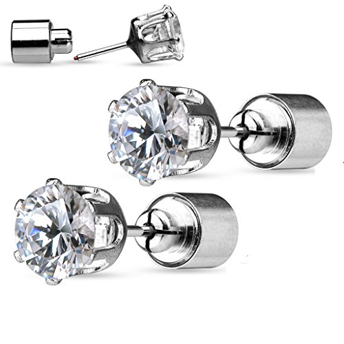 Dynamique - زوج من اقراط LED دائرية شفافة مرصعة بحجر زركونيا مكعب 316L الستيل الجراحي. البطارية متضمنة. تباع لكل ستانلس ستيل غير متوفر دينامكيوك للبالغين الجنسين