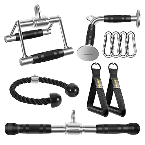 DYNASQUARE - Tricep Press Down Cable Machine Attachment, LAT Pulldown Attachments, Home Gym Accessories, Double D Handle, V-Shaped Bar, Tricep Rope, Pull Down Straight Bar