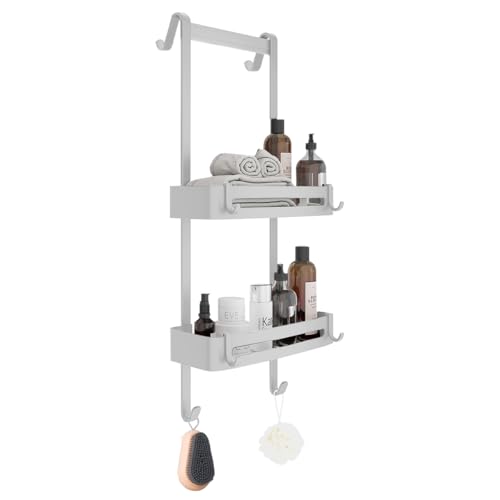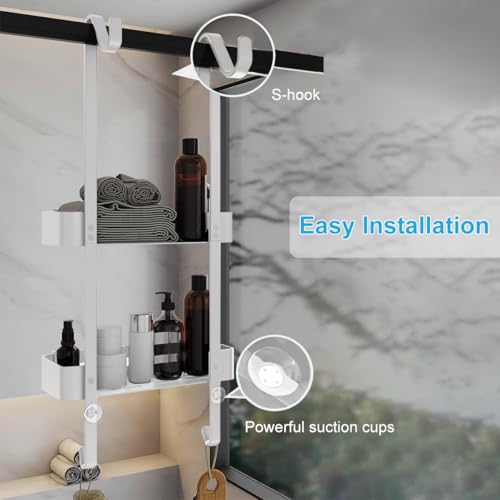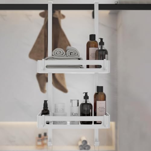 - 【خزانة تخزين ذات سعة كبيرة لتوفير المساحة】: تجمع خزانة التخزين المكونة من قطعة واحدة على الباب بين خمسة مستويات من رفوف الاستحمام لحمل جميع مستلزمات النظافة الخاصة بك مثل الشامبو وغسول الجسم وغسول الجسم وما إلى ذلك. مناسب بشكل خاص للحمامات الصغيرة، لذلك لن تضطر إلى رمي الزجاجات في كل مكان.