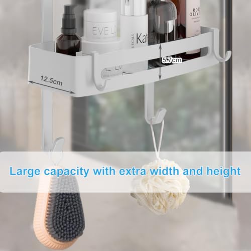 - 【خطافات متعددة ورفوف حساء】: يحتوي كل رف دش على خطافات، وإجمالي 8 خطافات كافية لشفرات الحلاقة والمناشف وإسفنجات الحمام والفرش. يوجد خطافان على الظهر لتعليق أرواب الحمام أو مناشف الحمام.