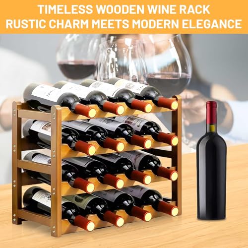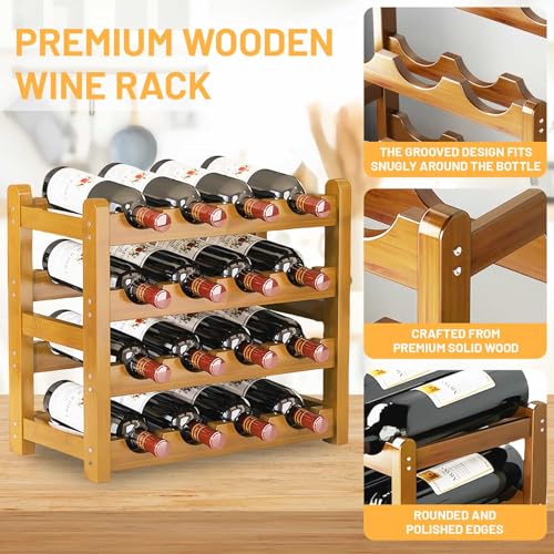 - 【Stylish 4-Tier Wooden Wine Rack】 - Elevate your space with this retro wine display shelf crafted from premium solid wood. Its vintage design blends seamlessly with modern kitchens, bars, or cellars, adding rustic charm while organizing 16 bottles effortlessly.