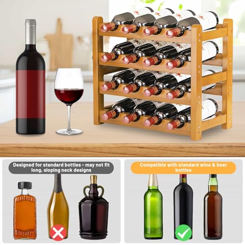 DYUEE - Wooden Wine Rack 16 Bottles Wine Storage Holder 4 Tier Free Standing Retro Wine Display Shelf Wine Bottle Organiser Water Bottle Holder for Cabine Cupboard Countertop Kitchen Bar Cellar