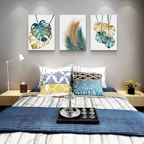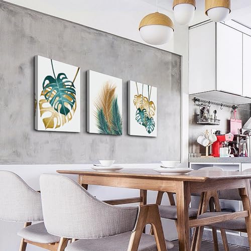 DZRWUBHS - DZRWUBHS Framed Wall Art For Bedroom Abstract Wall Decor Art For Living Room Kitchen Decoration Leaves Wall Painting Modern Wall Pictures Artwork Office Canvas Prints Dining Room Home Decor 3 Piece