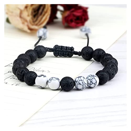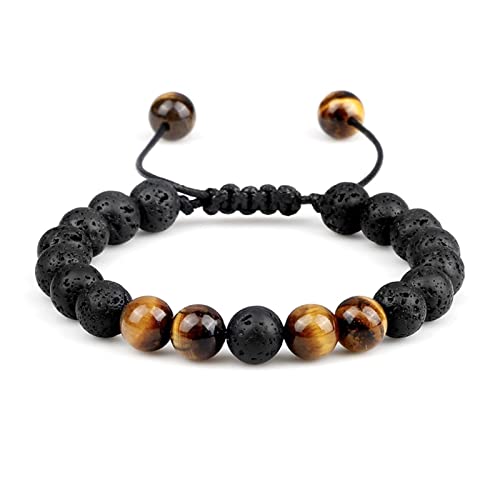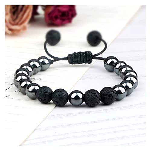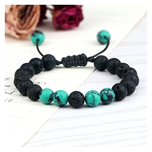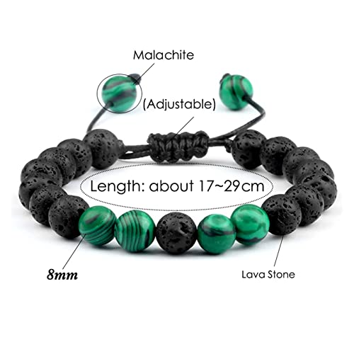DZX - DZX Stone Bead Bracelet, Beaded Bracelet, Natural Black Lava Stone, Tiger's Eye, Turquoise, Couples, Distance Charm Bracelets, Bangles, Women's Men's Jewellery (Malachite 1)