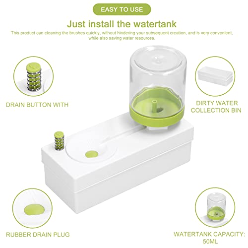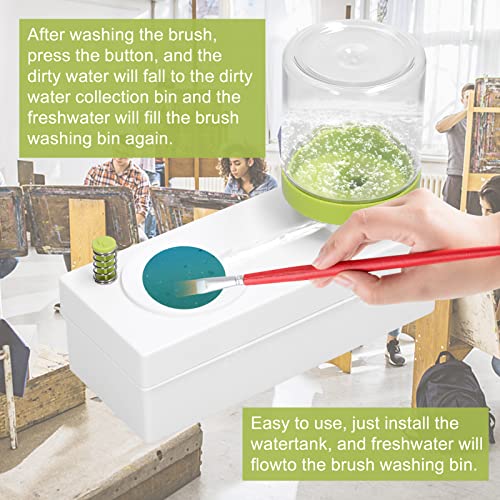 - ✨ Easy to use, just install the watertank, and freshwater will flowto the brush washing bin. After washing the brush, press the button, and the dirty water will fall to the dirty water collection bin and the freshwater will fill the brush washing bin again.