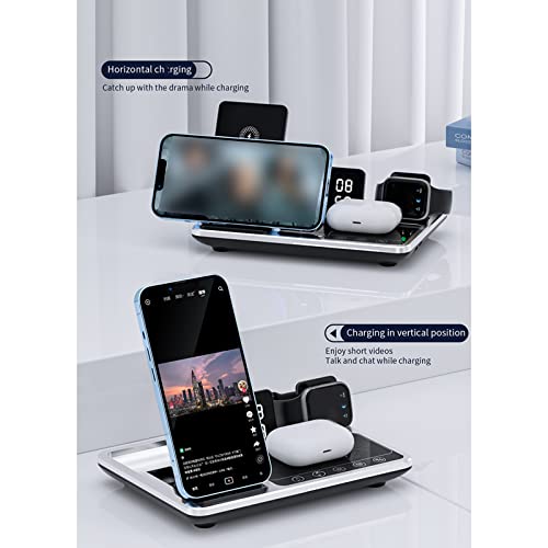 - 🪀 4 in 1 Wireless Charger: The wireless charging station with clock display, and supports charging 3 devices--mobile phones, watch, and earbuds at the same time.