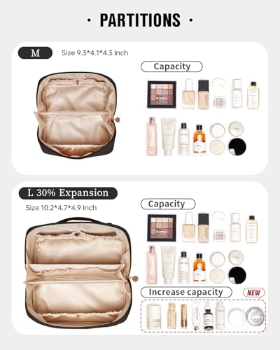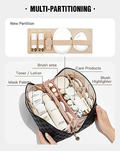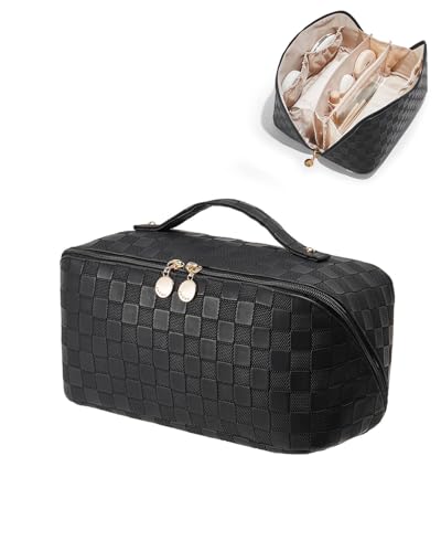 EACHY - شنطة مكياج للسفر من إيتشي شنط مستحضرات تجميل بسعة كبيرة للنساء خفيفة مقاومة للماء ومفتوحة ومسطحة لتنظيم أدوات الزينة مع مقسم ومقبض ايشي