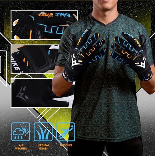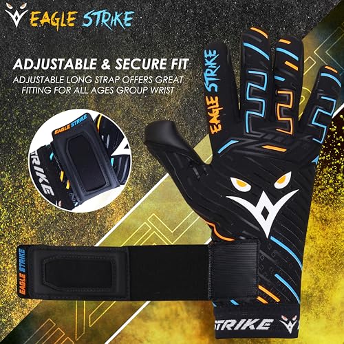 EAGLE STRIKE - EAGLE STRIKE Goalkeeper Goalie Gloves| Soccer Gloves with Wrist Support | Football Goal Keeper Gloves for Adults, Youth, and Junior for Professional Football Training