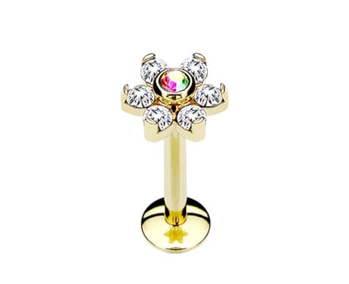 BIJOUX BEAUTIQUE - مجوهرات بيرسينج مرصعة بالكريستال على شكل زهرة للاذن/الشفاه - ذهبي، جوهرة اورورا