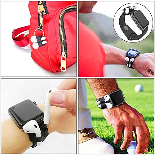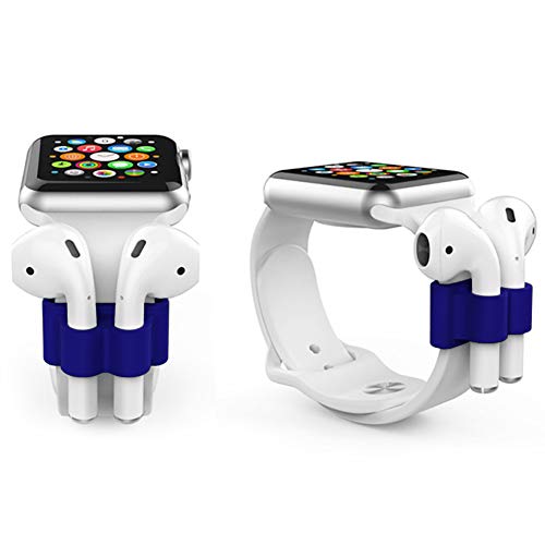 3E - Earphone Stand (Portable on Watch Strap) to protect the Earpiece from loss, Flexible silicone Compatible with Apple Wireless Earphones AirPods (Dark Blue)