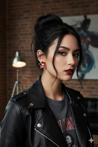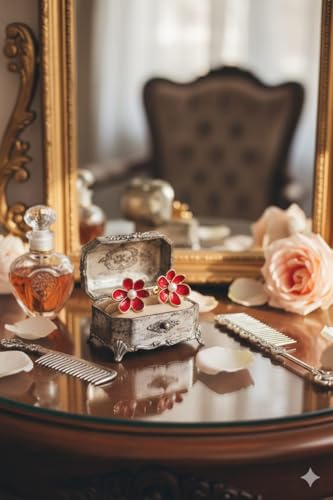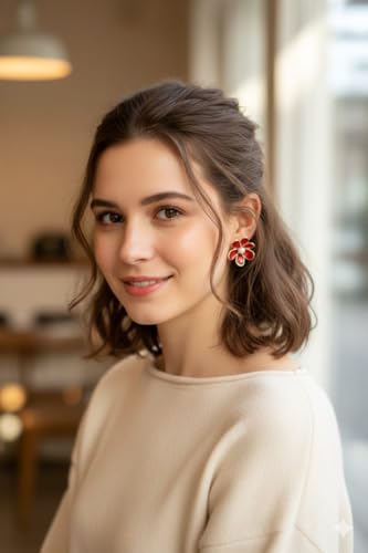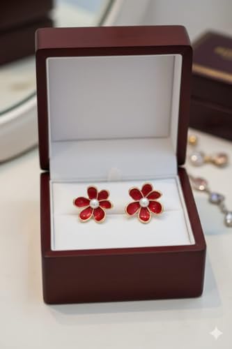 Generic - Earring"Rose Velvet" Made of Stainless Steel and Sensitivity - Gold Earrings with Classic Red Flower Design with Pearl for Daily Outings and Special Occasions - Girls Accessories - Brass Earring