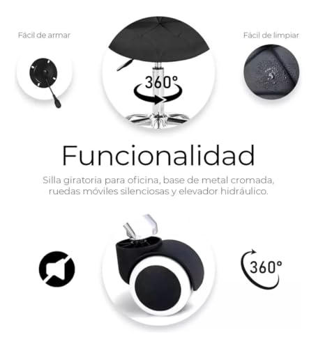 - The wheels will allow you to move around and easily clean up your space. You can easily move it when you need it. In addition, being rotatable will allow you to rotate the seat 360º without the need to change position or move from where you are.