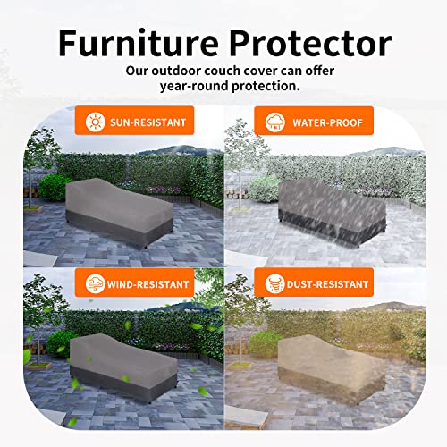 - Premium Quality: The outdoor chaise cover is made of 600D heavy duty oxford fabric coated PVC back, very durable and scratch-resistant. The fabric is processed with waterproof treatment, can be 100% waterproof and the water won't sleep into the cover on rainy days.