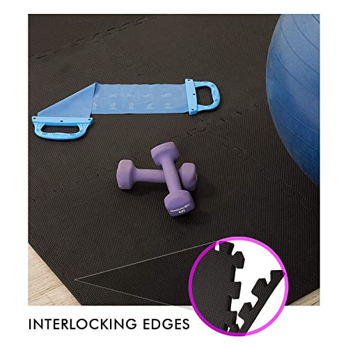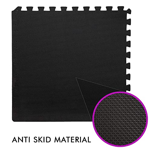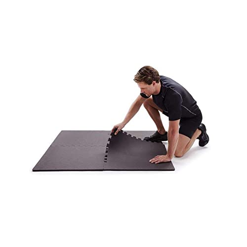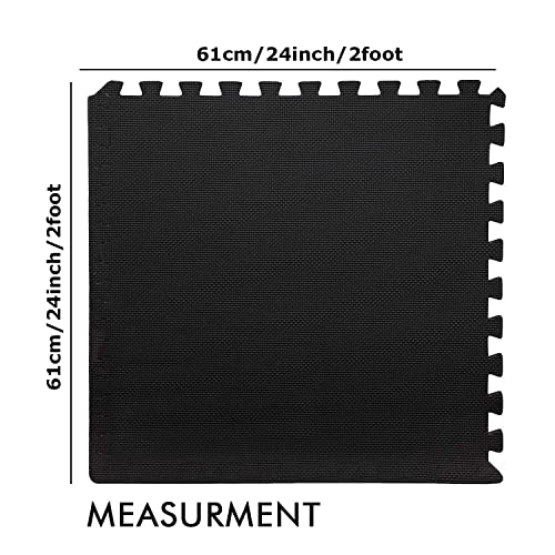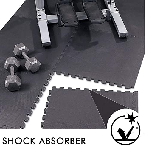EASY HOME - EASY HOME Gym Mats for Floor for Home and Living Room, Interlocking Rubber Floor Gym Mat for Workout at Home, EVA Foam Workout Mat- 60x60cm - 11mm Thick, Black (Pack of 12-48 Square Foot)