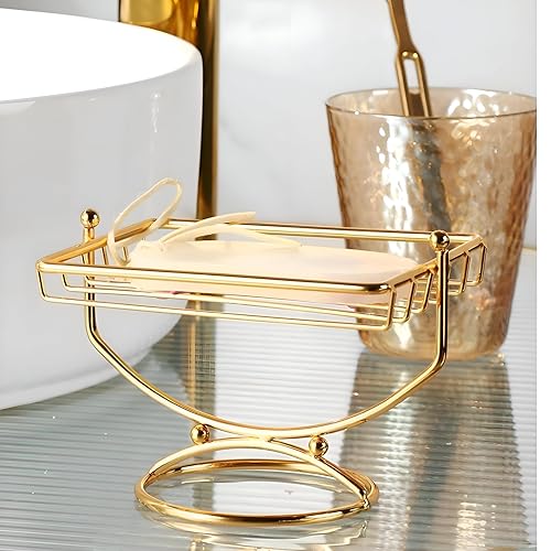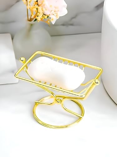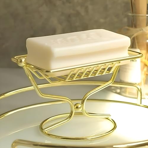 Generic - Easy Install - Modern gold-finished metal soap holder designed for quick, tool-free mounting, optimized drainage, and long-lasting durability, adding a premium decorative touch to any bathroom.