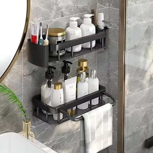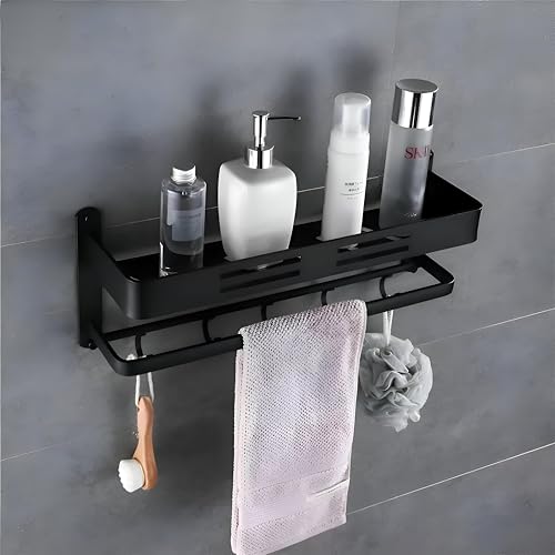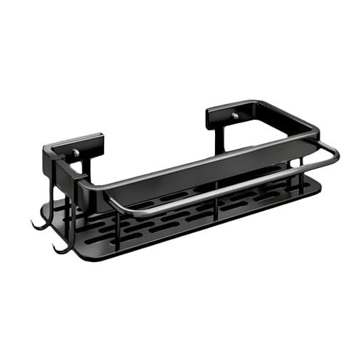 - Integrated drainage and ventilation holes promote airflow and prevent water pooling, keeping stored items dry and mold-free, while the sleek black finish adds a modern touch and helps the rack blend with most bathroom decor.