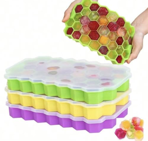 Generic - Easy Release Ice Cube Trays Silicone, Totally 37-Ice Trays for fizzy drinks, Cocktail, LFGB Certified and BPA Fre,(Yellow)