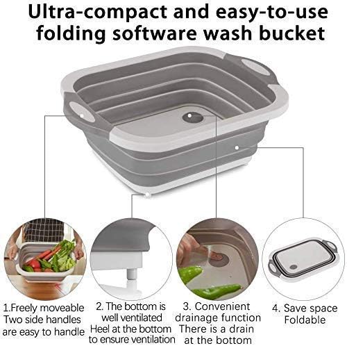 Spaceshoop - EASY SHOPE Vegetable Fruit Wash and Drain Sink Storage Basket, Space Saving for Kitchen Home & Multifunction Foldable Dish Tub, Collapsible Cutting Board Dish Tub & Collapsible Bord Dish
