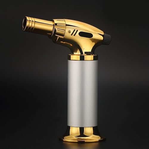 Generic - ولاعة غاز بوتان احترافية للطهي، شعلة مصممة بلهب قابل للتعديل وقفل أمان للطبخ والخبز والشواء والكريم بروليه، فضي وأسود (بدون غاز بوتان)