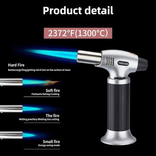 - لهب قابل للتعديل: ولاعة احترافية بخاصية تحكم دقيق في اللهب لمختلف استخدامات الطهي والوجبات التي تصنعها بنفسك - مثالية لصنع طبقة مثالية فوق الحلويات.