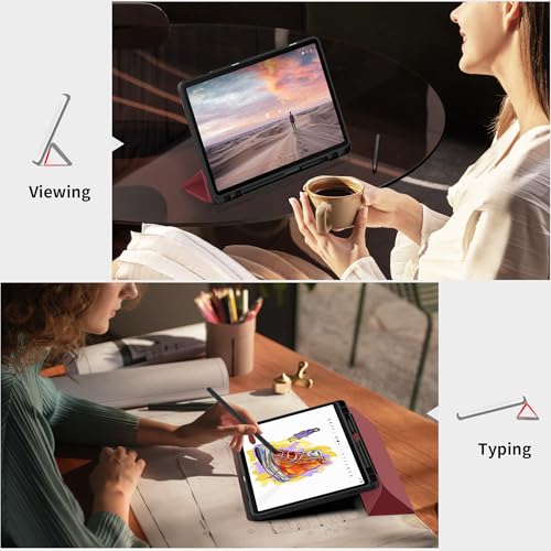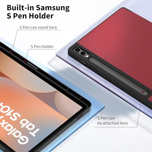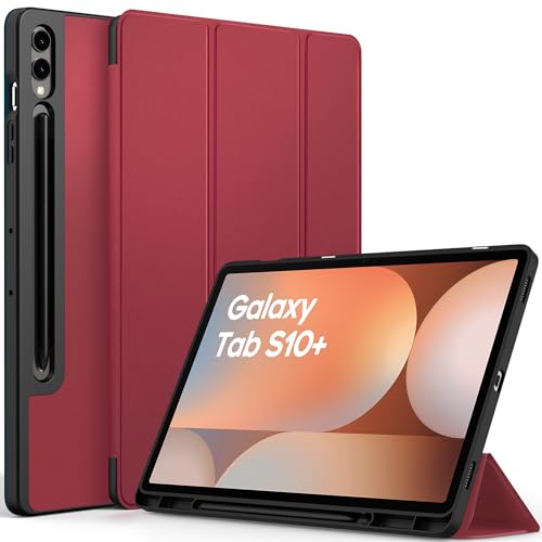 EasyAcc - EasyAcc Case Compatible with Samsung Galaxy Tab S9 FE+ Plus/S9 Plus 12.4 Inch 2023 with S Pen Holder - Ultra Thin with Stand Function Slim PU Leather Protective Case, Red Wine