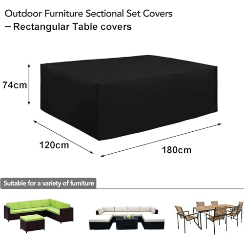 - Dimensions: The rectangular furniture cover measures 70.8"L x 47.2"W x 29.1"H, which fits outdoor sectional furniture set and rectangular patio table and chair set. Kindly measure your furniture size before purchasing. It is suggested to choose the cover 1-2 inch larger than your furniture size.
