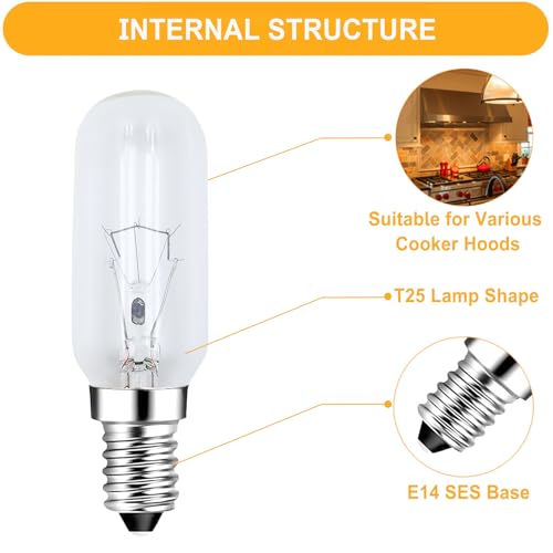 EASYIVY - لمبة إضاءة E14 من ايزي ايفي، مصباح T25 لشفاط الطباخ، مصباح إضاءة اس اي اس، مصباح إضاءة قابل للتعتيم 350 لومن ابيض دافئ 2700 كلفن لغطاء الشفاط، مصباح السقف، 3 قطع