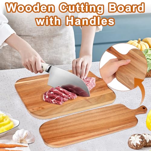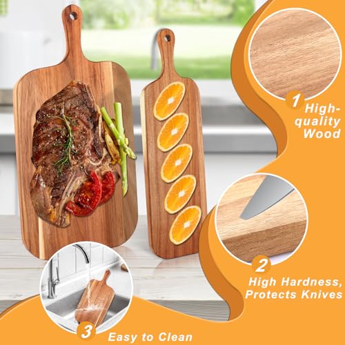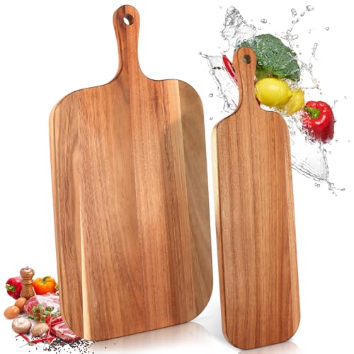 EATHEATY - 2 Pack Acacia Wood Cutting Board with Handle – Large and Small Wooden Kitchen Chopping Block - Charcuterie Serving Board for Cheese, Meat, Bread, Fruits & Vegetables