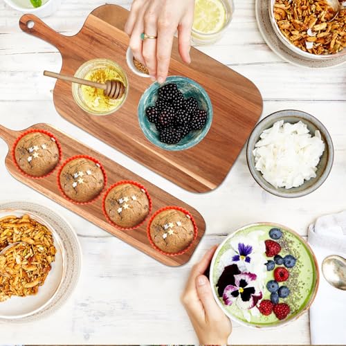 - Ultimate Kitchen Versatility: Perfect as a butcher block for meats, bread board for slicing, pizza peel for serving, or elegant charcuterie display for entertaining, these boards transition seamlessly from food prep to beautiful table presentation