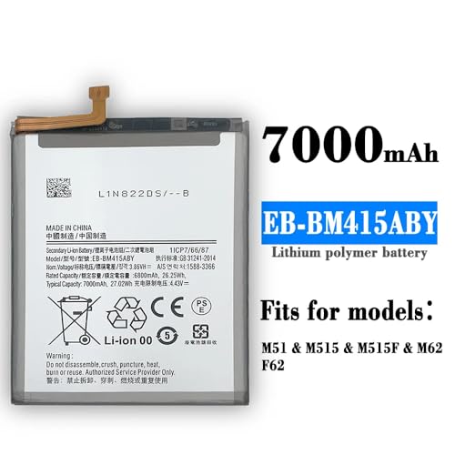 Generic - EB-BM415ABY Replacement Battery For Samsung Galaxy M51 compatible with M51, M515, M515F, M62, F62, 7000mAh Li-ion, 3.86V, 27.02Wh