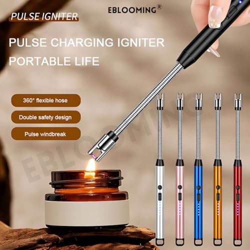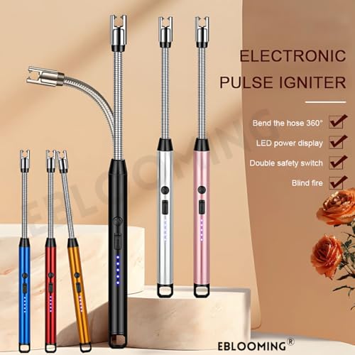 Eblooming - Electric Lighter, Electric USB Rechargeable Lighter with Battery Display, Longer Flexible Neck Windproof Plasma Arc Long Lighters for Candles, Fireworks, KitchenUse