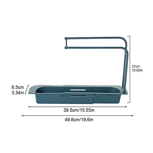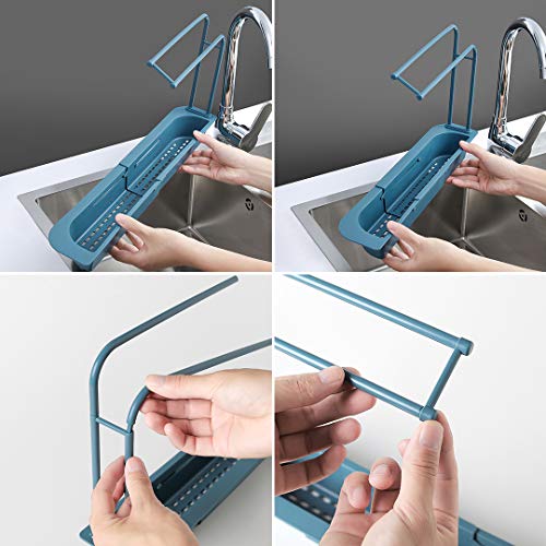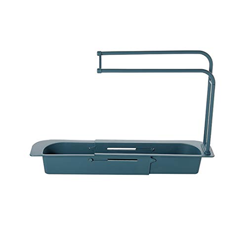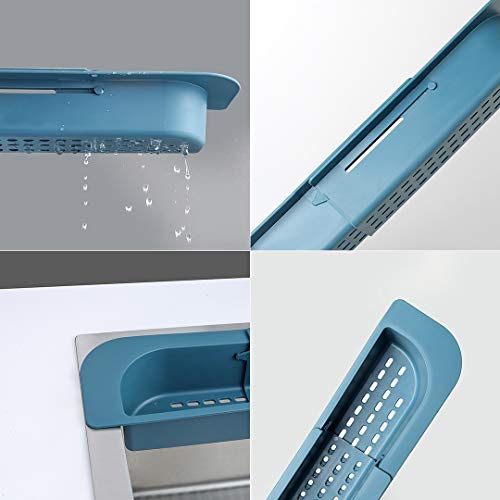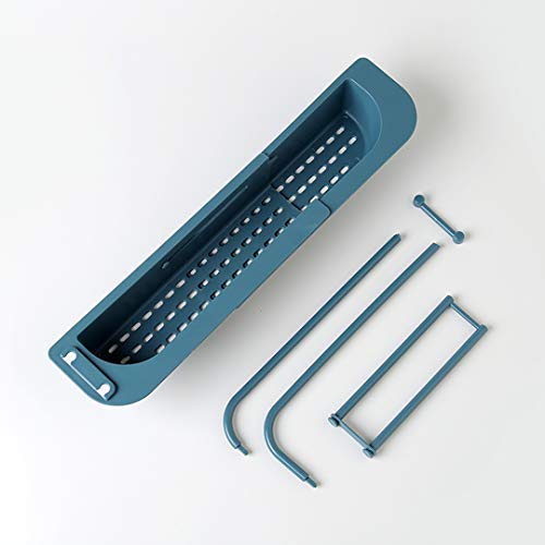 EBSTL - رف أدوات مطبخ مبتكر بتصميم تيليسكوبي لحوض الجلي مع صبانة بسلة مثقبة للتصريف منظم علاقة لفوطة الأطباق وسلة تصريف ثخينة من اي بي اس تي ال بولي بروبلين أزرق